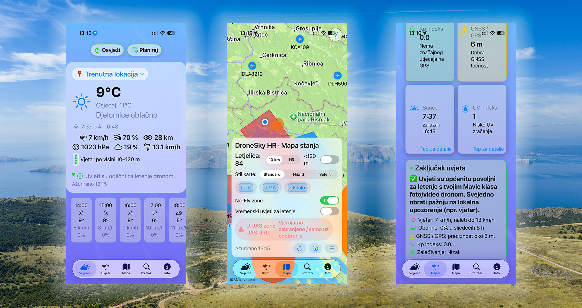 Aplikacije koje spajaju vremensku prognozu, zračni prostor i alate za planiranje leta znatno olakšavaju pripremu svake misije. Umjesto da skidaš podatke s više različitih servisa, možeš u jednoj aplikaciji vidjeti hoće li vjetar po visini, vidljivost i moguća ograničenja zračnog prostora utjecati na tvoj planirani let dronom u Hrvatskoj.